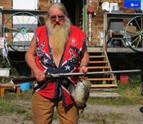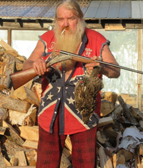 Ed listening to Guide Scott playing some tunes beside the ole still in the kitchen